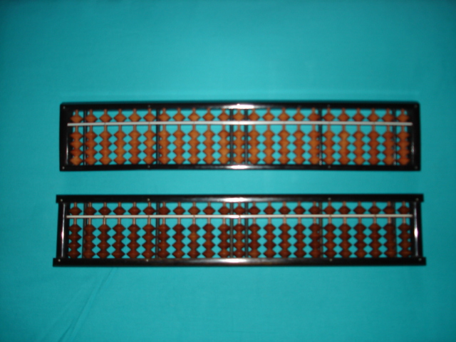 O material para o caixilho deve ser escuro (para contrastar com as contas), pesado, não sujeito a se contrair ou empenar; deve ainda absorver a vibração do movimento das contas. As madeiras mais usadas são ébano e carvalho japonês. | |||